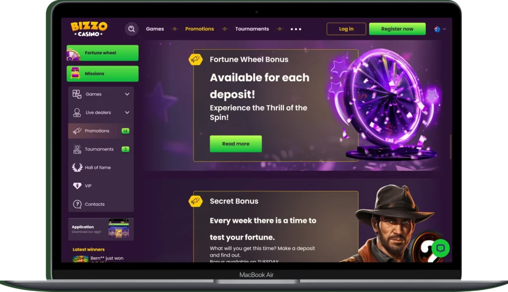 Players that place higher wager tend to have a higher chance at winning huge prizes without the need for Bizzo casino codes.